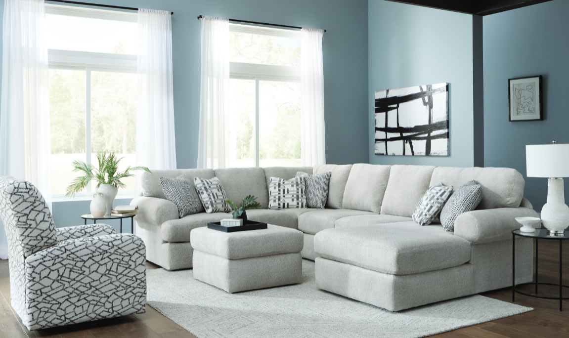 The Alexvale Darcy Sectional offers the ultimate curl up comfort. The seat cushions are deep and thick, while the backs are soft and plush. Perfect for enjoying a good book or watching your favorite team. Customize the configuration and fabric combination to find the right fit for your home.