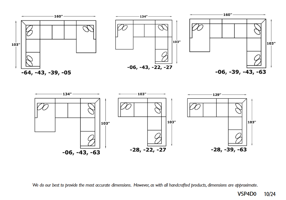 For the ends, there are RAF/LAF Chaises, RAF/LAF loveseats, RAF/LAF corner sofas.