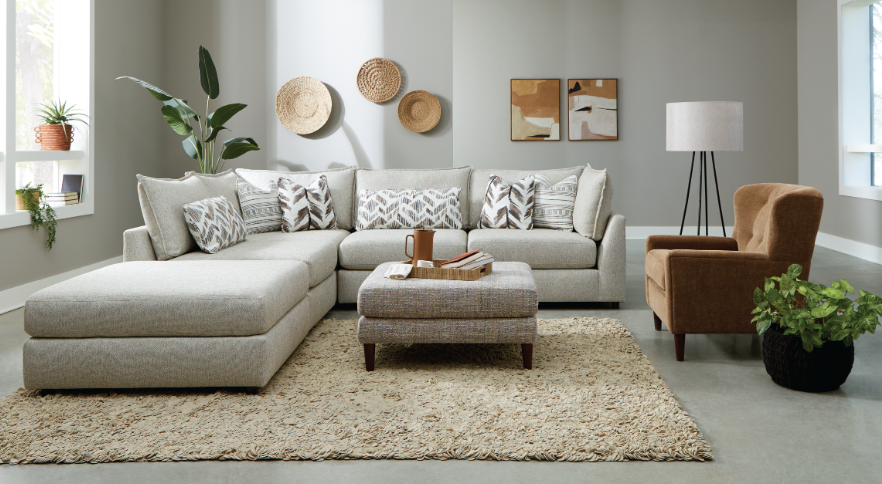 The modular construction maximizes space and injects a sophisticated flair into your home. Its easy disassembly and reassembly facilitate stress free moving processes! The combination of transitional style, quality blend, high-performance fabric, and versatility guarantees a sectional that you will enjoy for years to come.