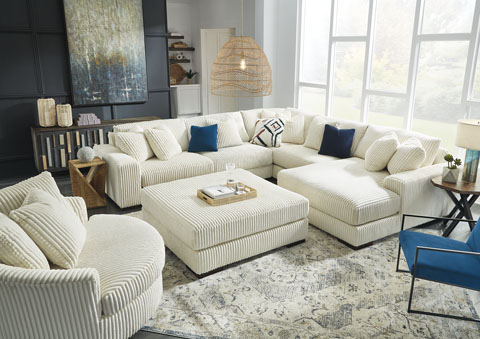 The Lindyn Sectional is plush and posh. Showcase your eye for on-trend texture with the statement-making cord upholstery of this sectional. Its stunningly soft fabric entices in an ivory or grey hue, complementing contemporary color palettes. Sink into the cushions and plan to stay a while—this cozy living room centerpiece highlights your high-end approach to comfort and style.